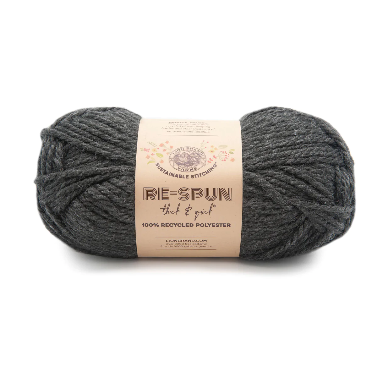 YARN: Lion Brand Re-Spun Thick and Quick - super bulky yarn (6) in Pumice Stone, Spruce, Raven and Dark Cherry